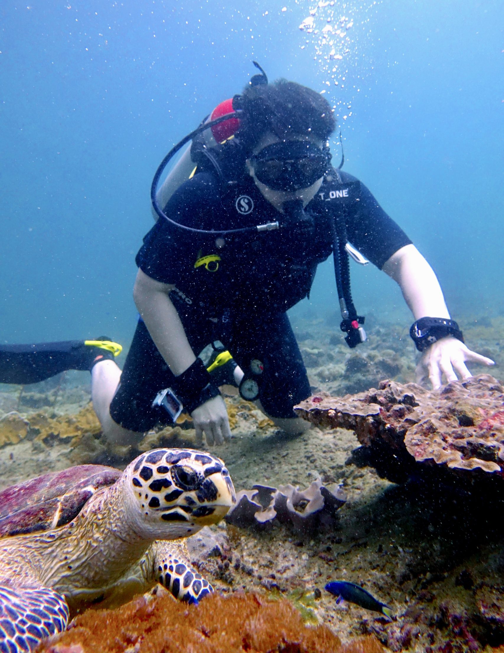 Diving by Phi Phi Islands, Thailand for my Advanced Open Water certification in 2022.